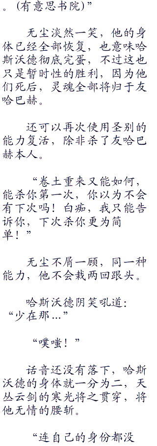 无尘的双眸格外黯淡无力,浑身透着无力,眼见哈斯沃德被制服之后,直接一屁~股的坐在地上。