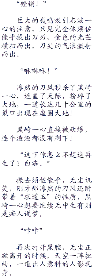 冰冷的长刀绞碎无尘的五脏六腑,瞬息间便终结了他的性命!艰难的扭过头来,映入眼帘的正是完好无损的黑崎一心!
