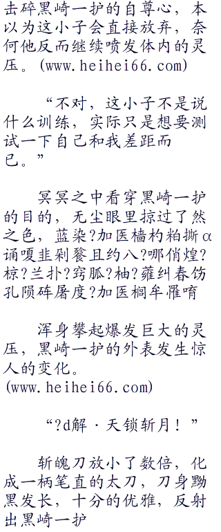 牙一咬,用力撕扯“六杖光牢“,但起到的作用却收效甚小,甚至可以忽略不计,扭动半天的功夫,六杖光牢也没有松懈的迹象,反而黑崎一护面红的喘着粗气。