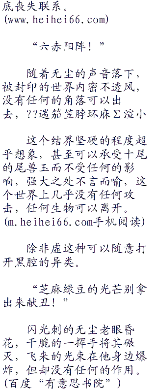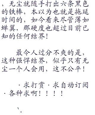 无尘冷笑一声,同时手中射出六条黑色的铁棒。六方形的特殊结界顿时形成,将整个世界都隔离而开,和外界彻