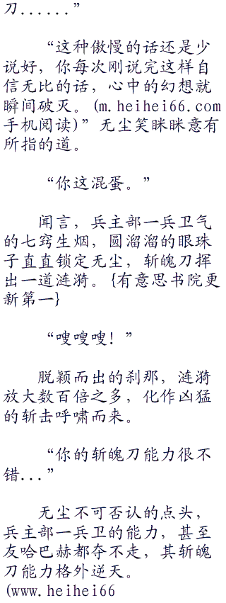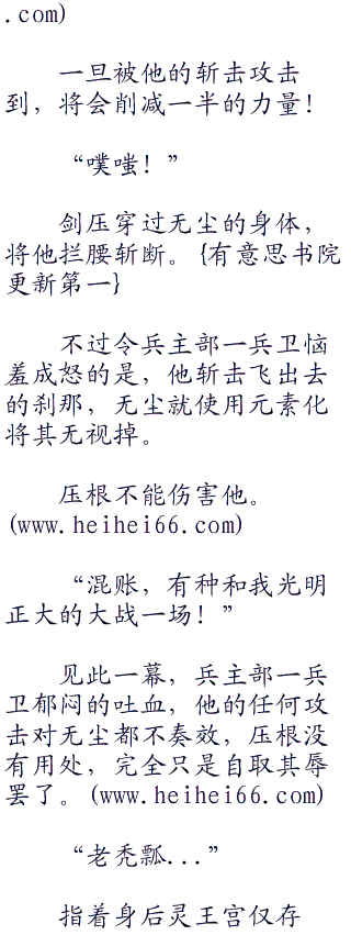 兵主部一兵卫大惊,连忙解除浑身的封印,看着无尘那热切的眼神,他一阵胆战心惊,连忙爆喝道:“我告诉你,灵王大人是尸魂界虚圈以及虚圈的象征,一旦死亡森罗万象将全本崩溃泯灭,这样对你也没有好处!”