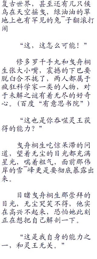 无尘露出淡淡的浅笑,感受体内雄浑的力量波动,露出迷~恋享受的表情,这源源无尽的灵压让他仿佛飘在云端,异常舒服。