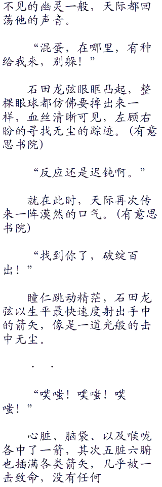 又是密密麻麻的箭矢迎面而来,招招致死,几乎都瞄准身体的要害部~位。
