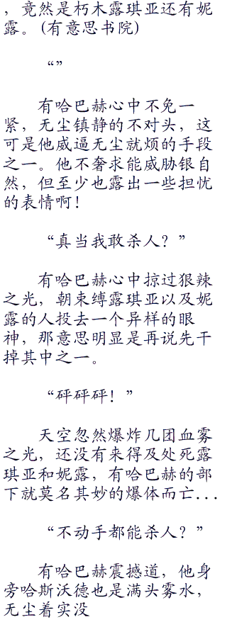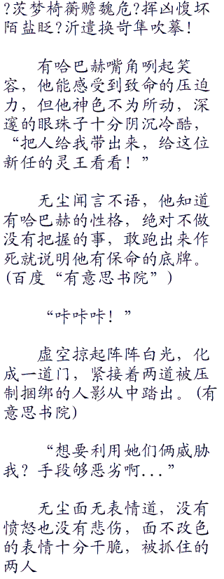 黑崎一护和石田雨龙都是浑身恶寒,望着无尘那冷淡的目光,两人的一颗心都要跳了出来。俗话说杀人不过头点地,然而放在无尘身上,这句话明显太次了,一念之间就踩碎一个世界,这种无与伦比的绝对实力,实在令人升不起反抗意志。最要命是无尘那夸张的身份灵王,杀了他整个世界都将崩溃,压根不能杀死,不然就等于自取灭亡!