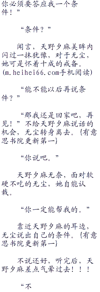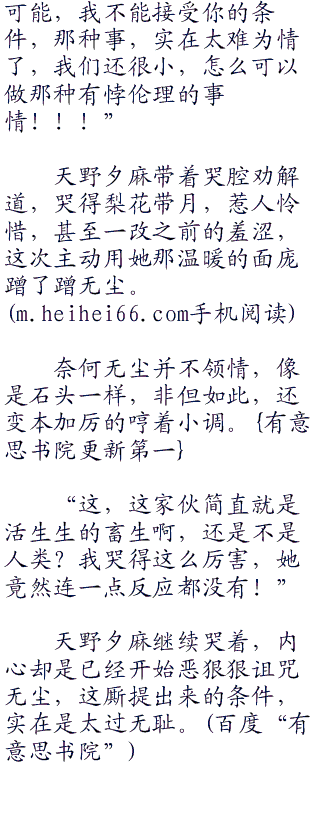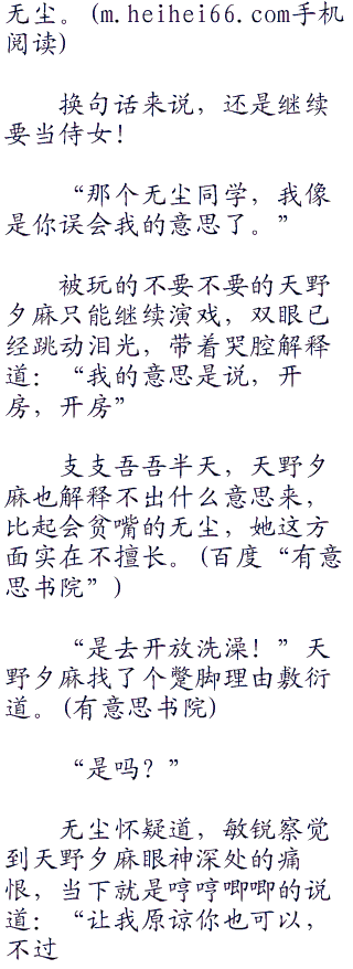 天野夕麻笑面如嫣,心里却是破口大骂,短短两天的时间,她快成为无尘的私有物,被以各种不同的方式压榨着。