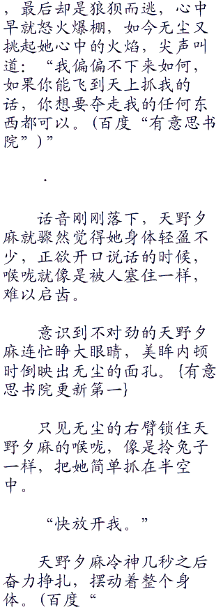 漆黑的瞳仁褶褶生辉,明亮异常,仿佛一眼能够看破红尘往事,天野夕麻觉得自己一生的秘密,全部暴露在无尘的瞳仁之下,浑身上下都被看的一览无余,哪怕最隐秘的部~位也不例外!