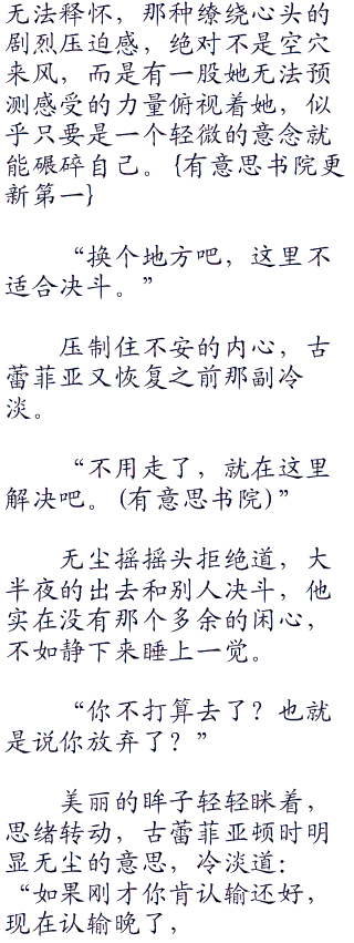 “能了解我的意思是最好,你不答应也没有关系,那样我绝对不会和你比试,连打动我的礼物都没有,你觉得有必要进行一场无聊的决斗吗?而且结果更无趣,还是一面倒的态势。”