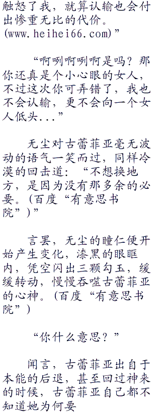 怎么说也是魔王的妻子,闻名世界,如今被一个毛都没长齐的小鬼藐视,古蕾菲亚纵使想要一笑而过,劝自己不要和小孩置气,也被无尘折腾一肚子火气。