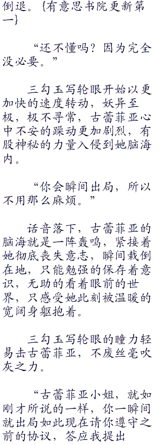古蕾菲亚暗暗咬牙,脸色越来越难看,无尘最后那几个字“一面倒的态势”,刺伤了她的尊严。