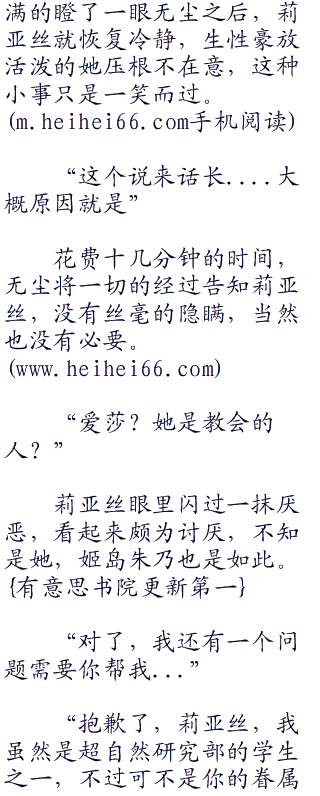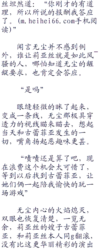 与此同时,另一个方向,无尘和爱莎聊得颇为欢快,有说有笑,叽叽喳喳不停。无尘从未觉得自己除了打打杀杀,和阴谋诡计之外还有其他属性泡妞!