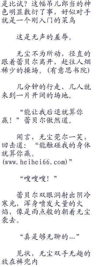 无尘毫不留情的打击着,故意撩拨着蕾贝尔的火焰,像是她这种自视甚高的人,一定会视家族荣耀为性命。