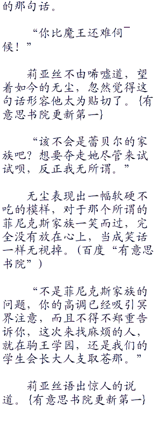 无尘闻言扭头离开,他还没有洗脸刷牙,空耗下去没准又要迟到。