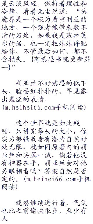 “你和塞拉芙尔发生什么?为什么提起你的时候,她就恨不得把你碎尸万段?”萨泽克斯深表不解,一个堂堂的魔王为何顾忌一个小鬼,他是真的明白。