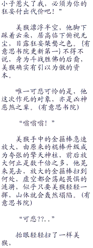 “美猴,你刚才放水了?”塔城黑歌凑近脸色发青的美猴问道。