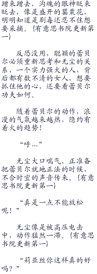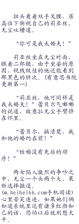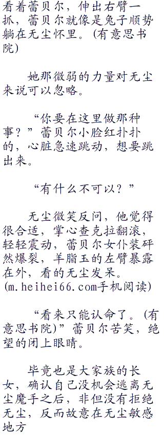 蕾贝尔点点头,没有过多感受,就算没有这场突如其来的婚约,她知道自己这辈子也是无尘手里的玩物。蕾贝尔也没有多大排斥,像是她们这种大家族的后代,多数情况下都是联姻的牺牲品,比如莉亚丝就和他哥哥联姻。