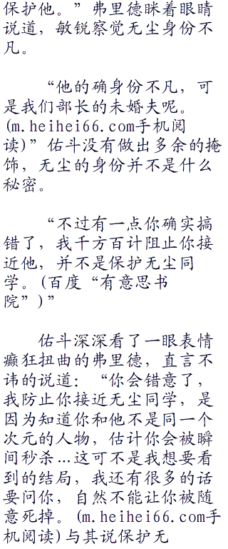 弗里德牙齿都快咬碎,就因为木场佑斗横插一脚,无尘那讨厌的面孔还活在世上恶心膈应他。