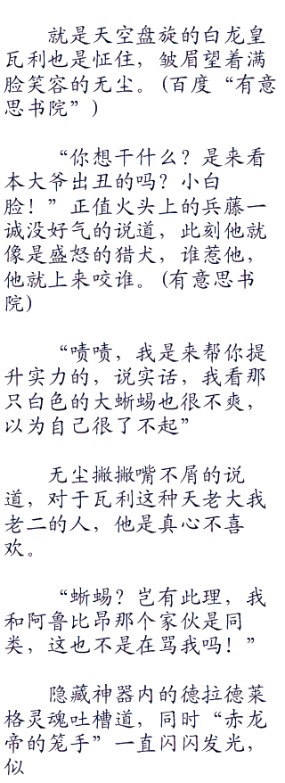白龙皇瓦利自然不知道无尘心中所想,如若不然,根据他的个性来看,最后一定会和无尘拼命的。首发