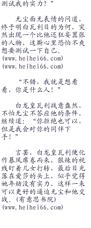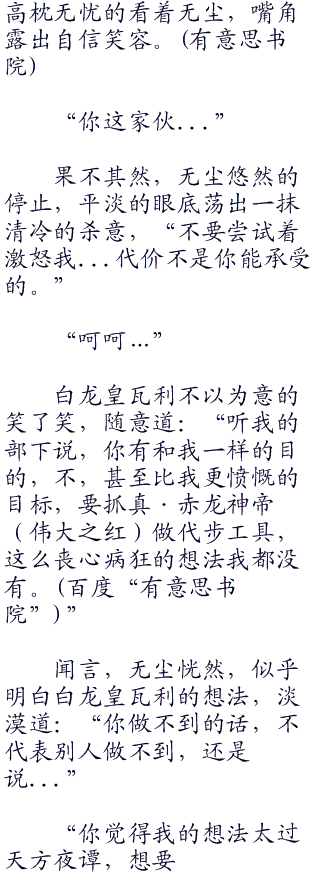 步伐停止,转头露出半张侧脸,无尘对于疾驰而来的白龙皇瓦利置若罔闻,只有一句话的简单概括,“自以为是很强的中二少年!”
