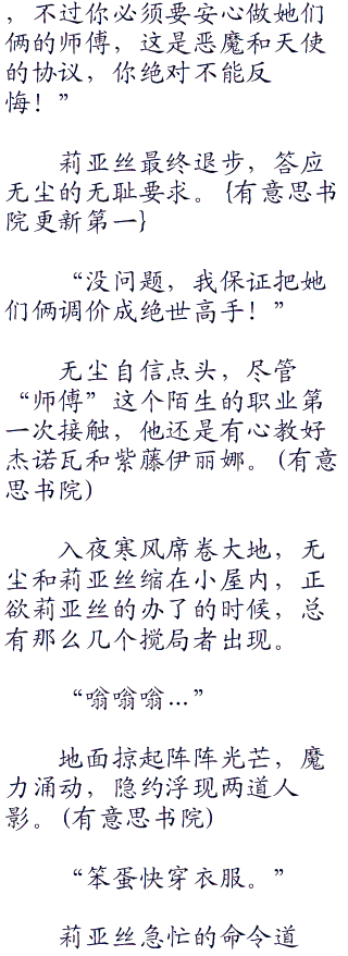 如此一来,莉亚丝能接受的话也正常,彰显一下恶魔的诚意。