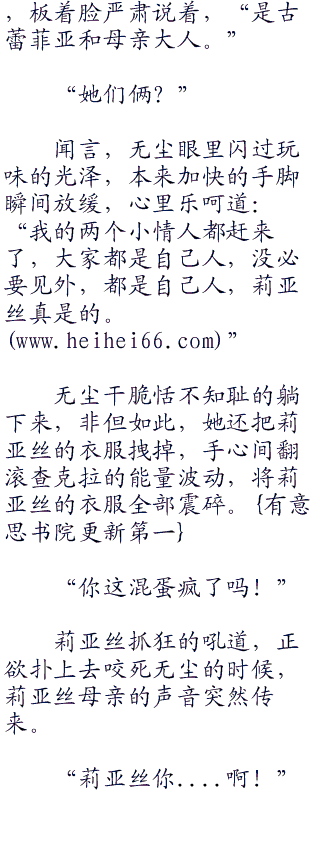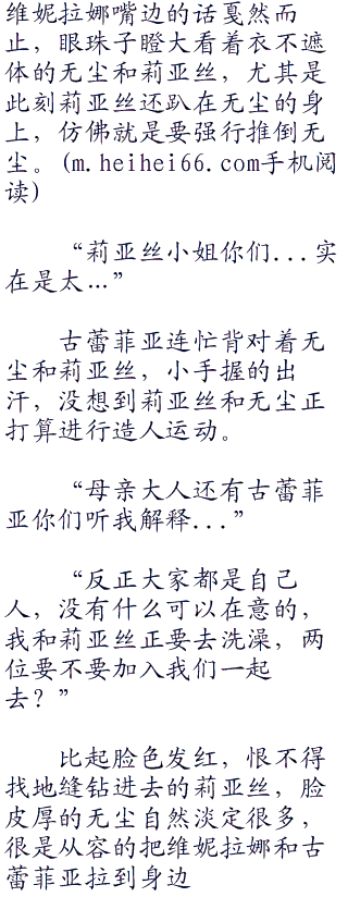 闻言,莉亚丝淡定至极,摆出气定神闲的模样,一点也不担心无尘拒绝,只是把她那傲人的身材凑到无尘身边。