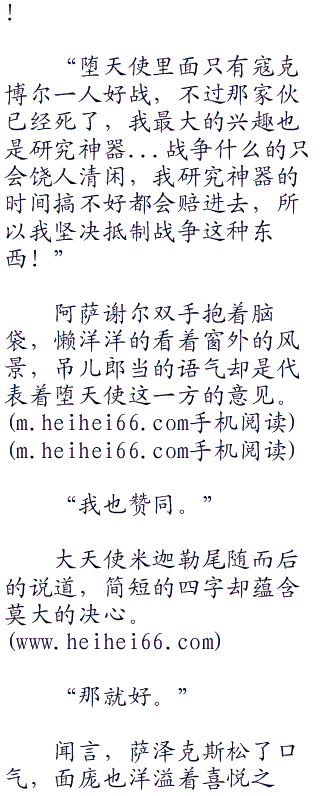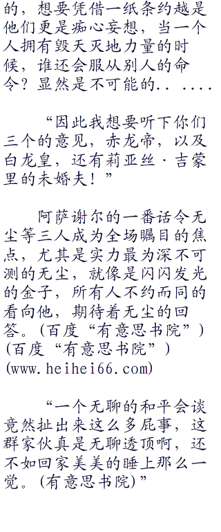 萨泽克斯赶紧转移话题,他们这次兴师动众的是来考虑和平问题,而不是讨论无尘的实力以及他的战绩