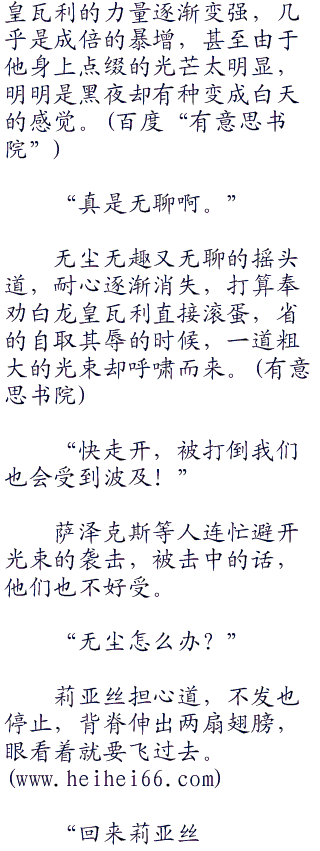 白龙皇的光翼,以及赤龙帝的笼手,都有一个特性,那就是宿主情绪波动越大,所爆发出的力量越来越强,眼下的瓦利有学习兵藤一诚的趋势。