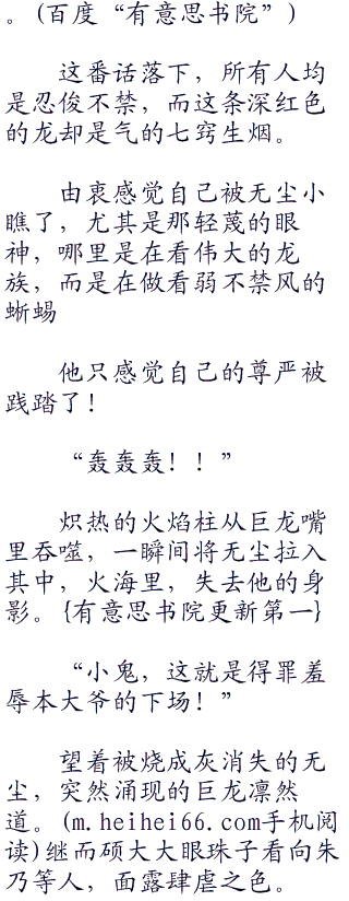 不料被无尘盯着的怪物发出惊天的大咆哮,怒不可止的吼道:“本大爷是龙族!”