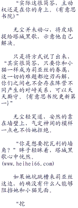 “她和你非亲非故,为何那么在意她?”塔城黑歌美眸流光溢彩,实在不明白无尘的图谋。