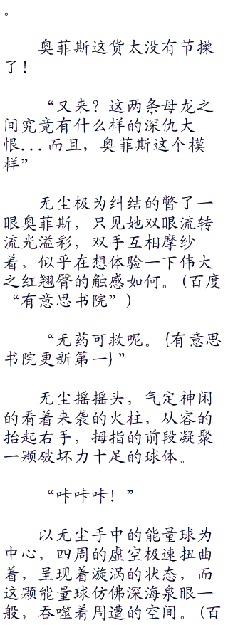 伟大之红龙眼低着,她的气势明显不如无尘那么宽广,纵使两人的力量同样是无限的,实力和力量方面无尘拥有压倒性的优势。