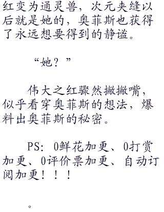 奥菲斯盯着伟大之红庞大的身体左看看右看看,目睹她真的睡着之后,毫无征兆的落到她身体上。