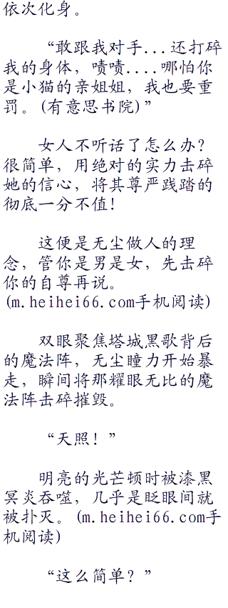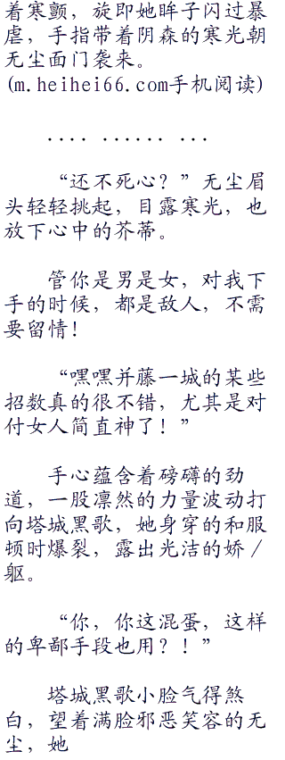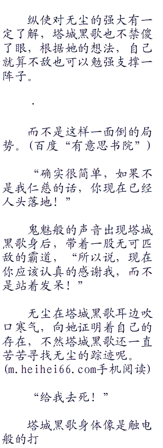 塔城黑歌抿嘴一笑,被无尘的独白吓了一跳,悄然打量无尘那张阴郁的小脸,她心里对无尘更加捉摸不透。