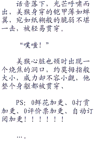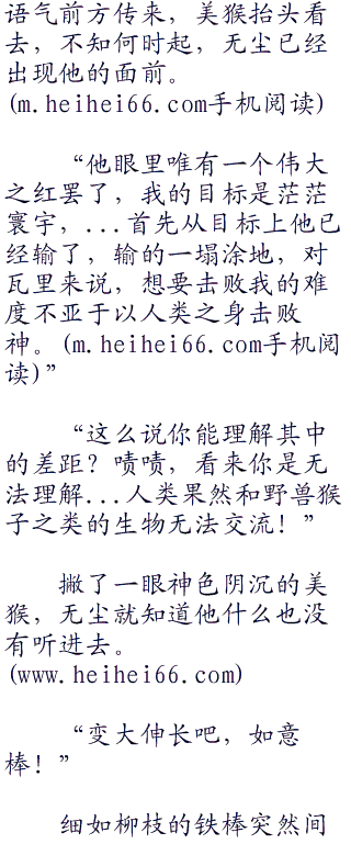 美猴的声音一下子放大数倍,面部的表情也是有些坚硬。