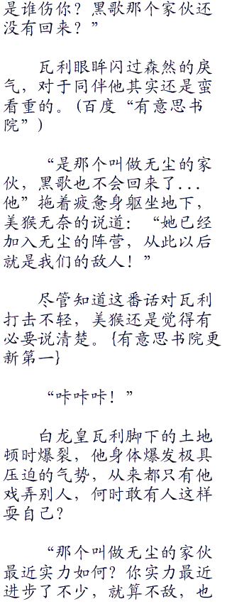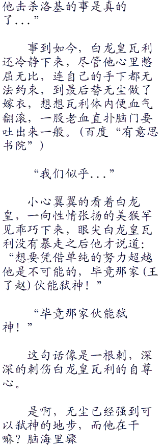 美猴震撼无比,一时间就是连刺痛也丢到九霄云外。拥有无尘这样一个强到无法无天的敌人,简直是所有人的噩梦,生不如死,就算是活着也活在恐惧之中。