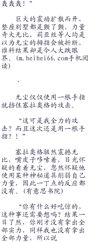 塞拉奥格大喝道,他那足以轰平一座山的拳头即将落到无尘脸上的时候,一直看似柔弱的手臂轻易抓住他。