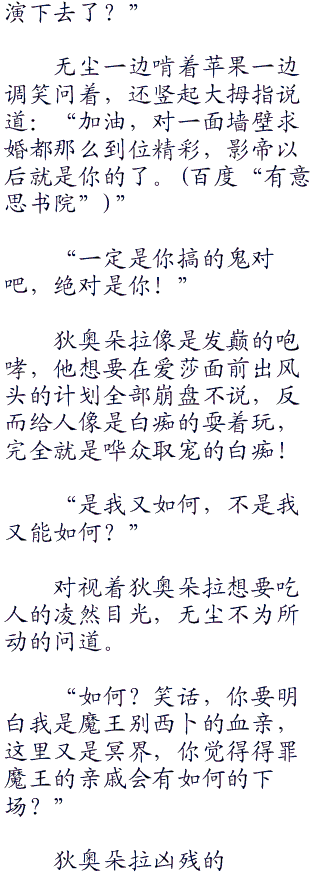 他的语气明显严厉几分,被人贸然打搅,又在无尘手上吃了亏,以至于颜面扫地,塞拉奥格现在火头上。