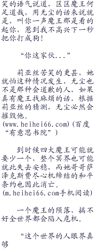 无尘不忍看见莉亚丝担心,安慰她道:“如果那个什么魔王真要找上门来,我也只能为民除害了!”