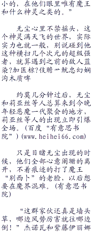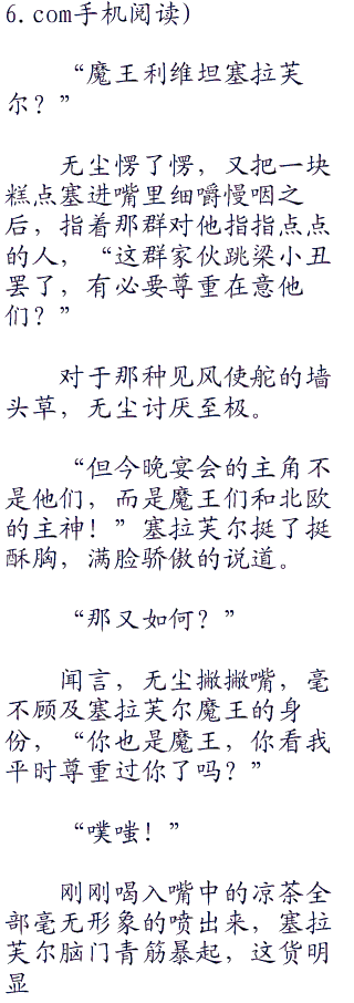 无尘似懂非懂的点点头,只是那吊儿郎单的表情明显没有放在心上,左顾右盼的无聊表情显然随意应付莉亚丝。