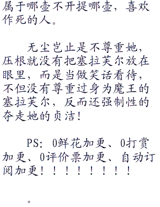 莉亚丝见状哭笑不得,对于无尘倍感头疼,虽然魔王“别西卜”也不可能降罪无尘,但是可不否认,无尘已经进入了魔王的视线。