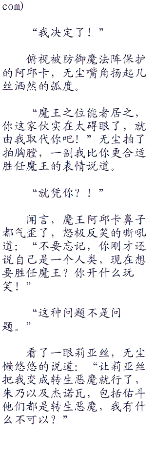 舔了舔干涩的嘴角,塞拉奥格也就是莉亚丝的表哥苦笑,他也被无尘噩梦般的实力吓到,力量是他引以为豪的,但想要一拳打退魔王无异于做梦。
