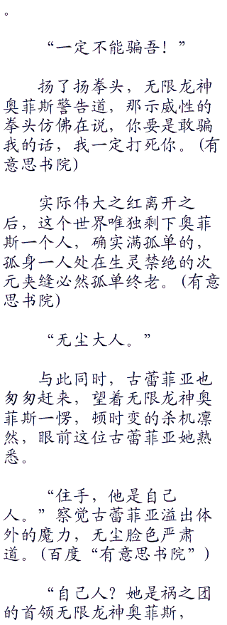 嘴角抽了抽,无尘想起某个兴趣爱好独特的小萝莉,表情阴郁道:“无限龙神奥菲斯...偷窥可不是龙神该做的事情!”
