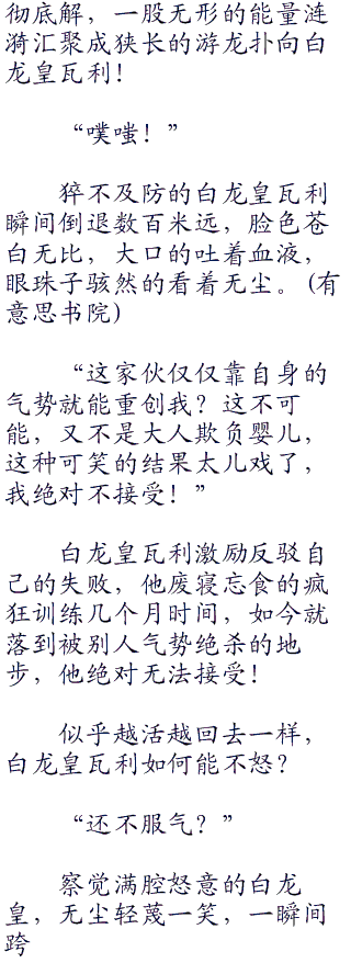 白龙皇瓦利不爽的仰天大吼道,这股玄乎的声音令他异常厌烦,语气透彻的高傲令他有种低人一等的自卑。