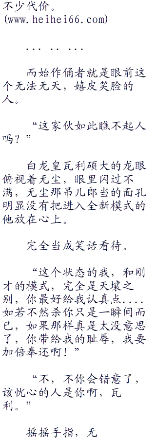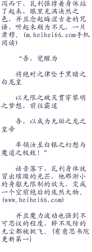白龙皇瓦利顽强的站起来,吐了口血沫,几颗苍白的牙齿碎沫清晰可见,他面部都呈现的凹陷,鼻子都被踹歪了,面庞呈现一个若有若无的大脚印。