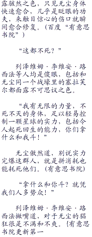 这突如其来的一幕,不止是无尘惊呆了,就连他身旁的塞拉芙尔也是面露骇然,小嘴都张的可以容下一个人的拳头。手机阅读更方便m..com