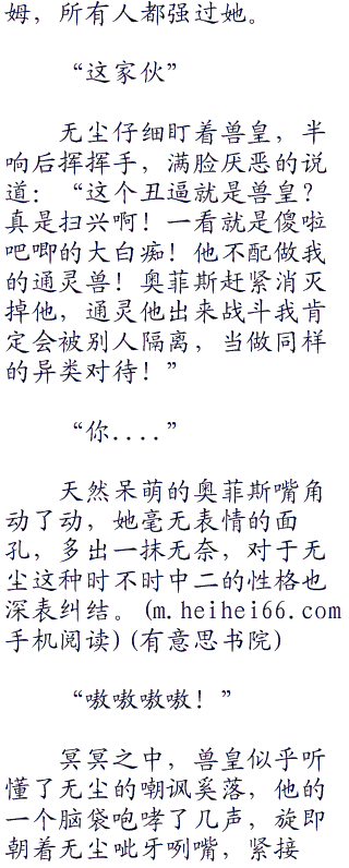 得意洋洋的表情充满骄傲,无尘神采飞扬的看着塞拉芙尔,一副小人的意志的模样,给人的感觉十分欠揍。