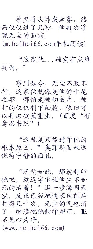 无尘眉头深锁,只见兽皇烧焦的伤痕,仅仅是眨眼的瞬间就恢复,不过被奥菲斯狂揍暴打疼痛倒是真的。