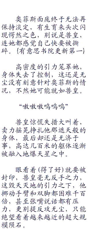翻滚的金色烈焰奥菲斯嘴里喷出,明明是一小团的火光,散发出来的于波却是影响到整个世界的运转。首发
