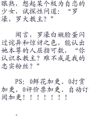 尽管醉生梦死的**生活赛过活神仙,但时间长了,生性好战的无尘也就腻歪了,甚至是有点厌烦。