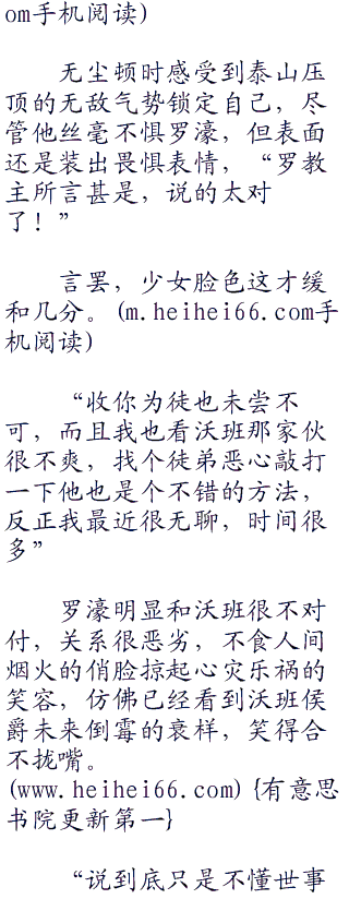 无尘随便找个蹩脚的理由,做出一副深仇大恨的模样,扭曲着脸恨声道:“我叫无尘,母亲是个巫女,但四年前不幸被东欧的弑神者沃班侯爵所抓,他逼迫母亲还有其他巫女举行召唤不从之神的仪式,仪式成功后,我的母亲也沦为陪葬品,尽管我恨死了他,但也无力报复,谁让他是传说之中的弑神者,反而我只是一介凡人,听别人说沃班侯爵和罗濠教主是宿敌,所以不远千里的赶来拜师...”