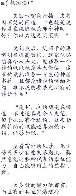 艾丽卡充满怀疑的看着无尘,这个小白脸看起来文质彬彬的,书生味浓浓,说他能够弑神几率接近于零。