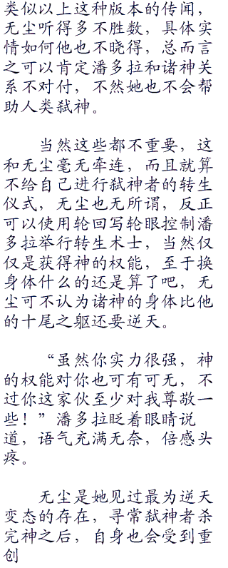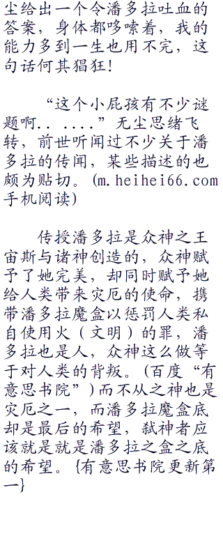 “你认识我?你究竟是谁?”潘多拉明显愣住,像是看怪物的看着无尘,知晓她存在的人凤毛麟角。